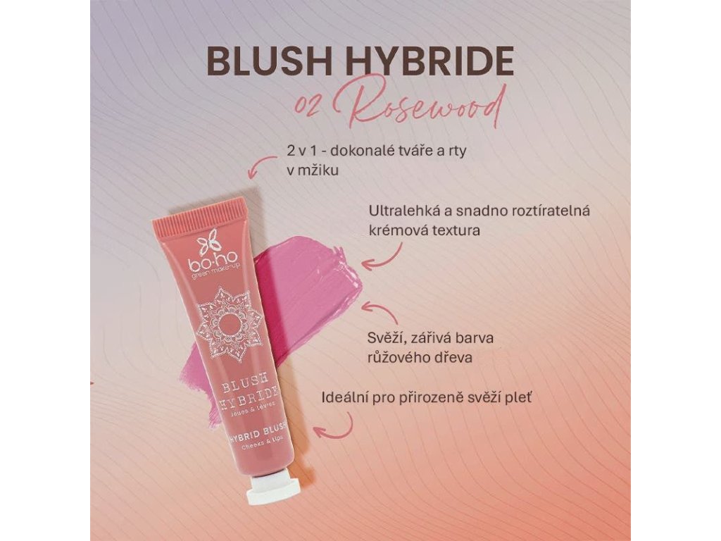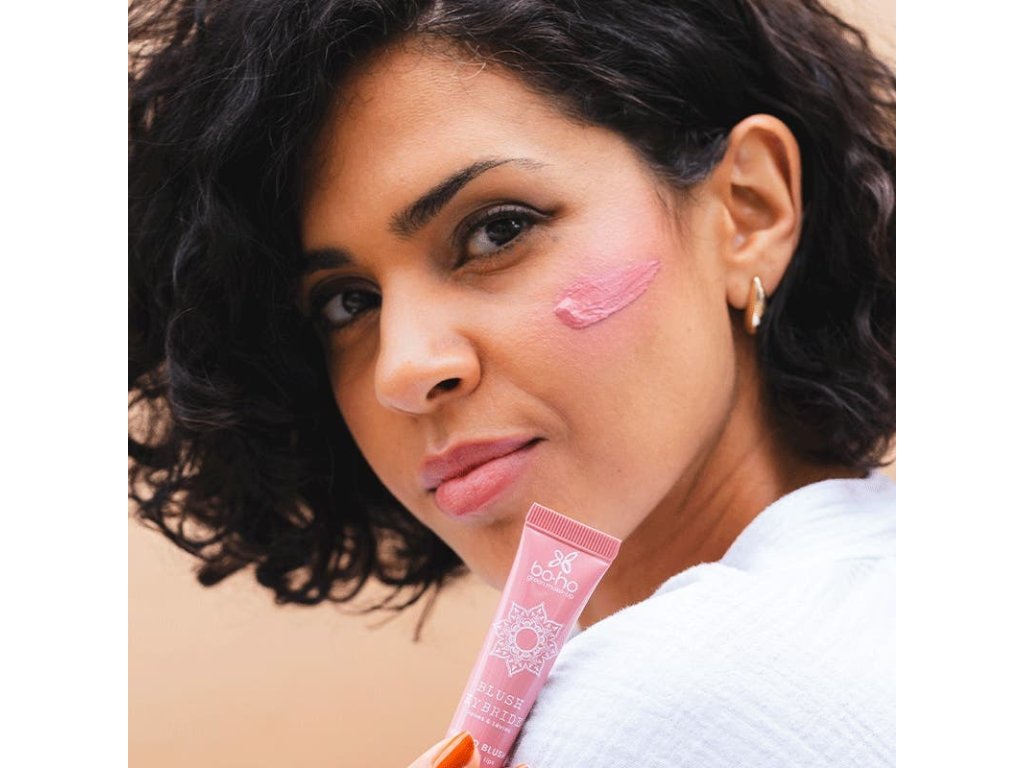 Návod k použití: Konečky prstů naneste malé množství tvářenky na lícní kosti a/nebo rty a poté jemně vklepejte. Pro ještě sjednocenější vzhled použijte štětec Boho Green Make-up na tvářenku a konturování 06.